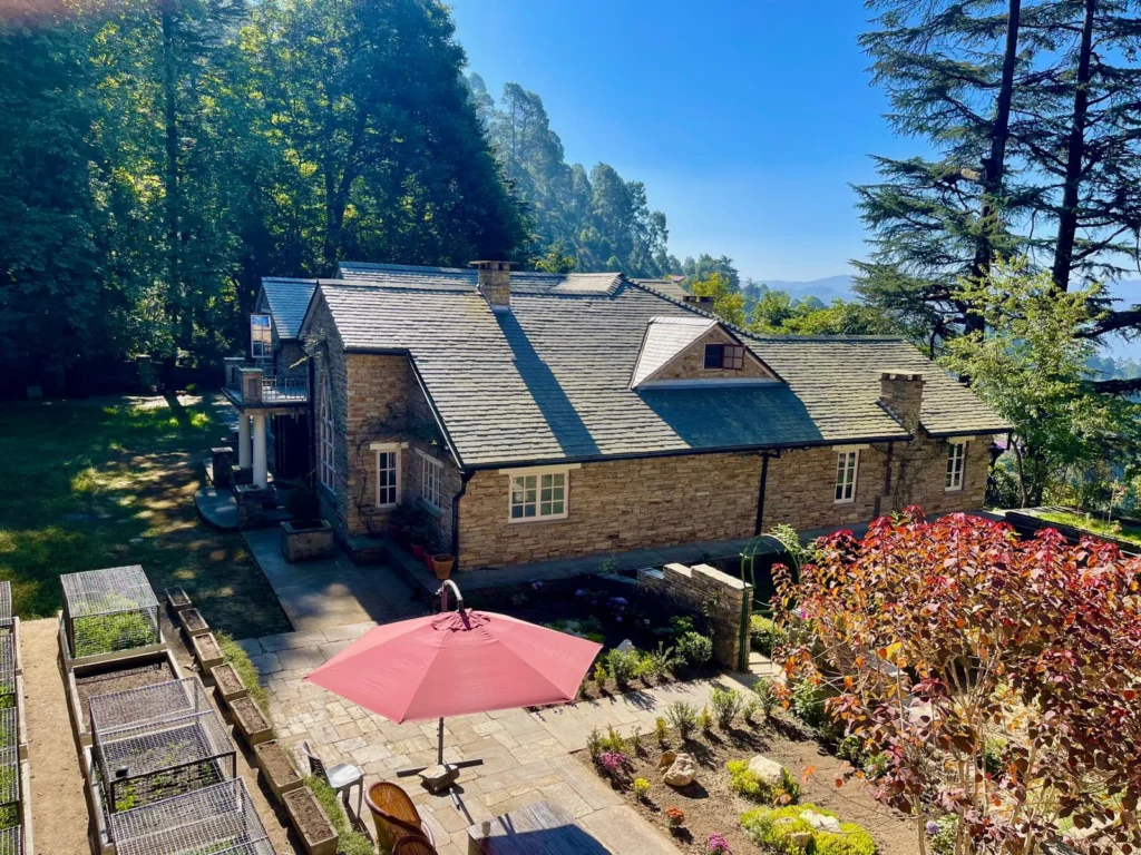 Stone Villa offers a quiet space nestled amongst tall deodars. With its stone walls, slate roof, and simple design, the cottage feels rooted in the landscape.